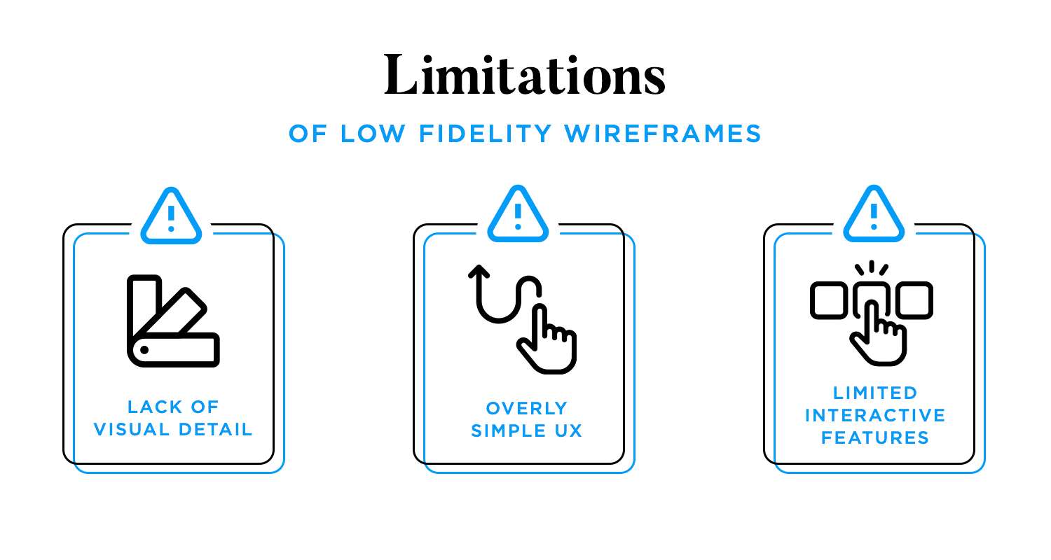 Low-fidelity wireframes are, by nature, simple and lacking detailed visual design elements. This can make it difficult for stakeholders to envision the final product’s look and feel, potentially leading to misunderstandings about the design’s aesthetics and overall impact.
